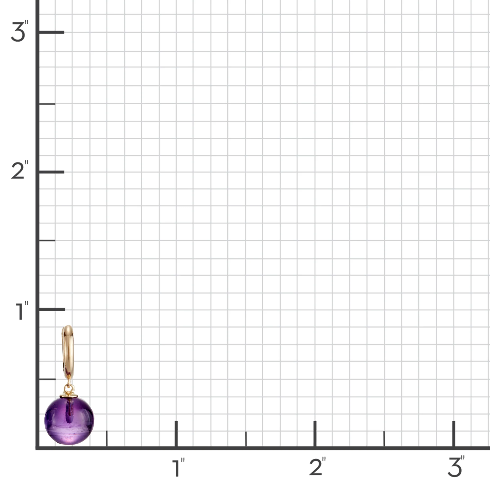 These earrings each feature a yellow gold huggie hoop tipped with a smooth amethyst bead. This vibrant pair is ideal for adding a subtle touch of color to any wardrobe. Amethyst, 10mm. 14-karat yellow gold. Overall: 1"L
