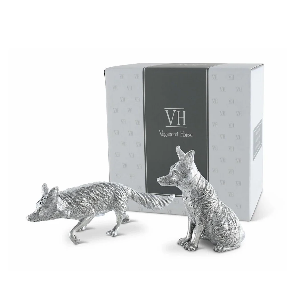 A stylish addition to your table, our foxes dispense seasoning with a touch of cunning elegance, ensuring your meals are always in good taste. The finely detailed, hand-finished pewter lends warmth to any setting.